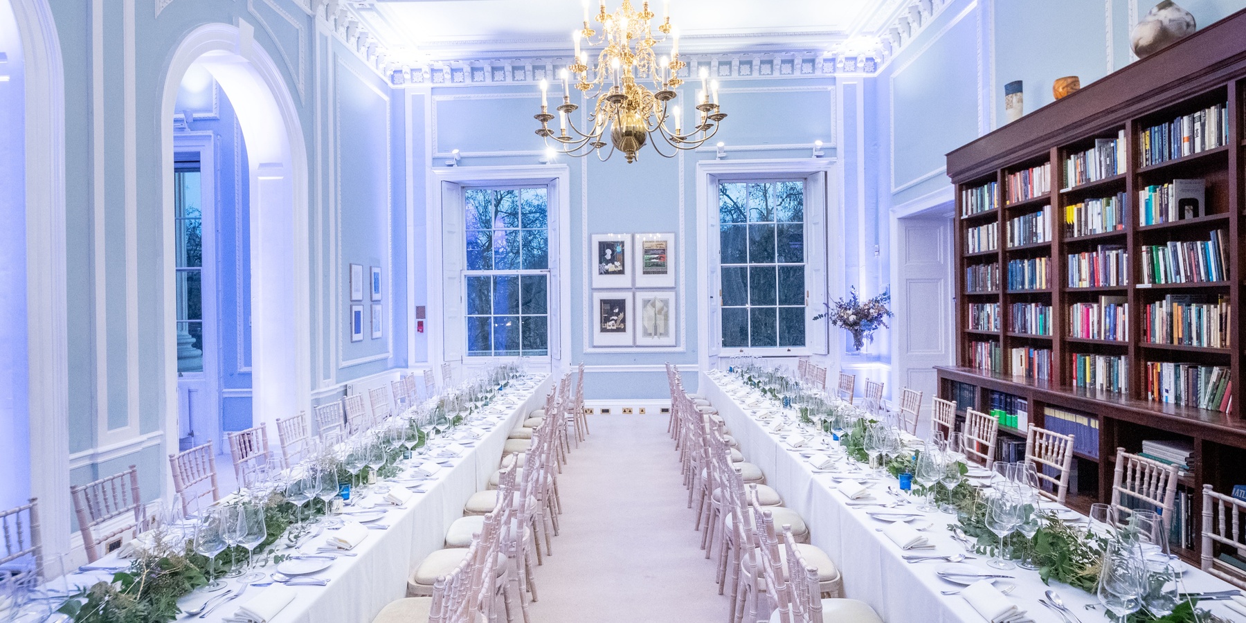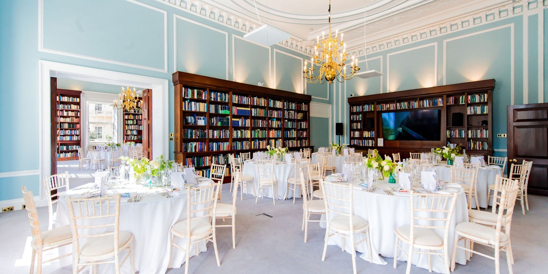 The room has beautiful high ceilings, with soaring arches and an alcove area and includes integrated technology with a built-in screen and PA system. Additional in-house equipment can be incorporated for a seamless hybrid event experience. This is perfect for meetings, small conferences, lectures or press announcements. It adjoins The Library, which works well as a breakout space or catering room, exhibition or networking space.